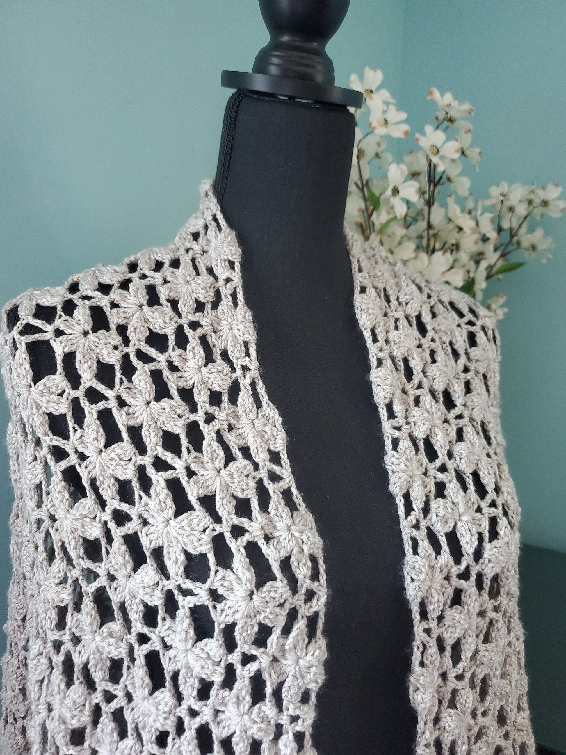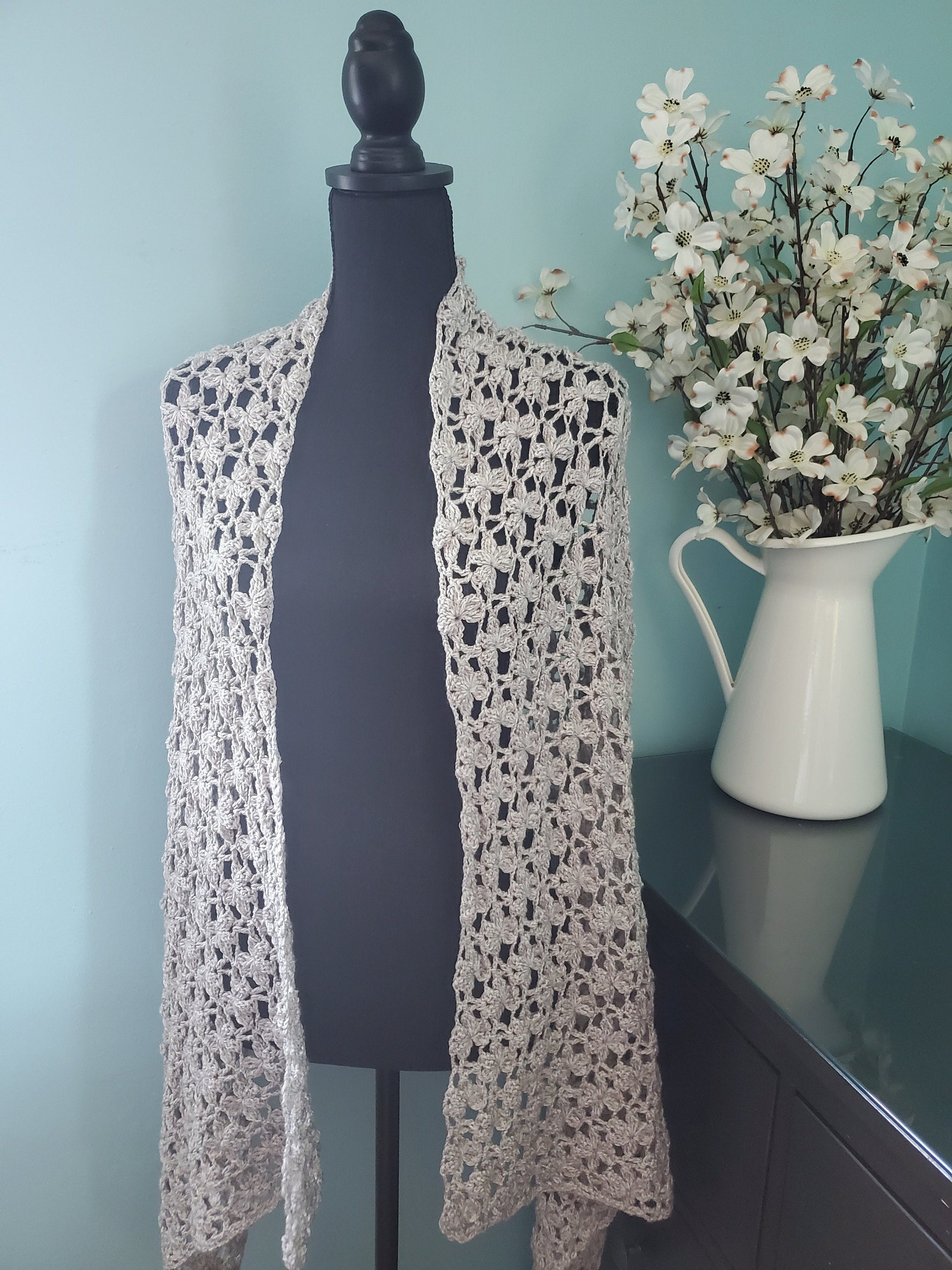 Crochet Floral Shawl in Linen Color