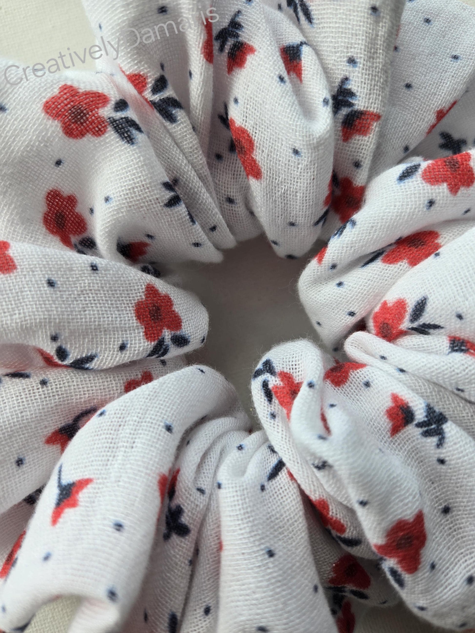 Floral Patterned Double Layer Cotton Muslin Scrunchie