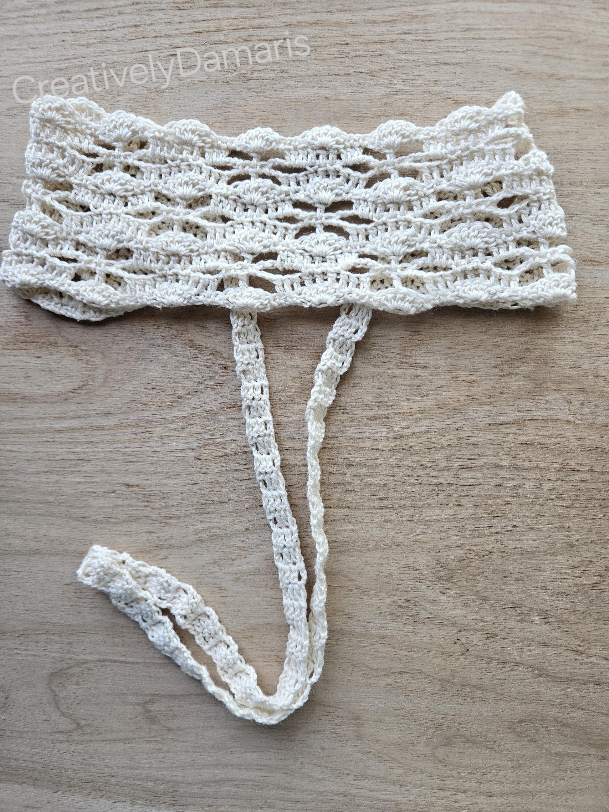 Length around head is 19". Headband Width: 3".  Ties: 14"