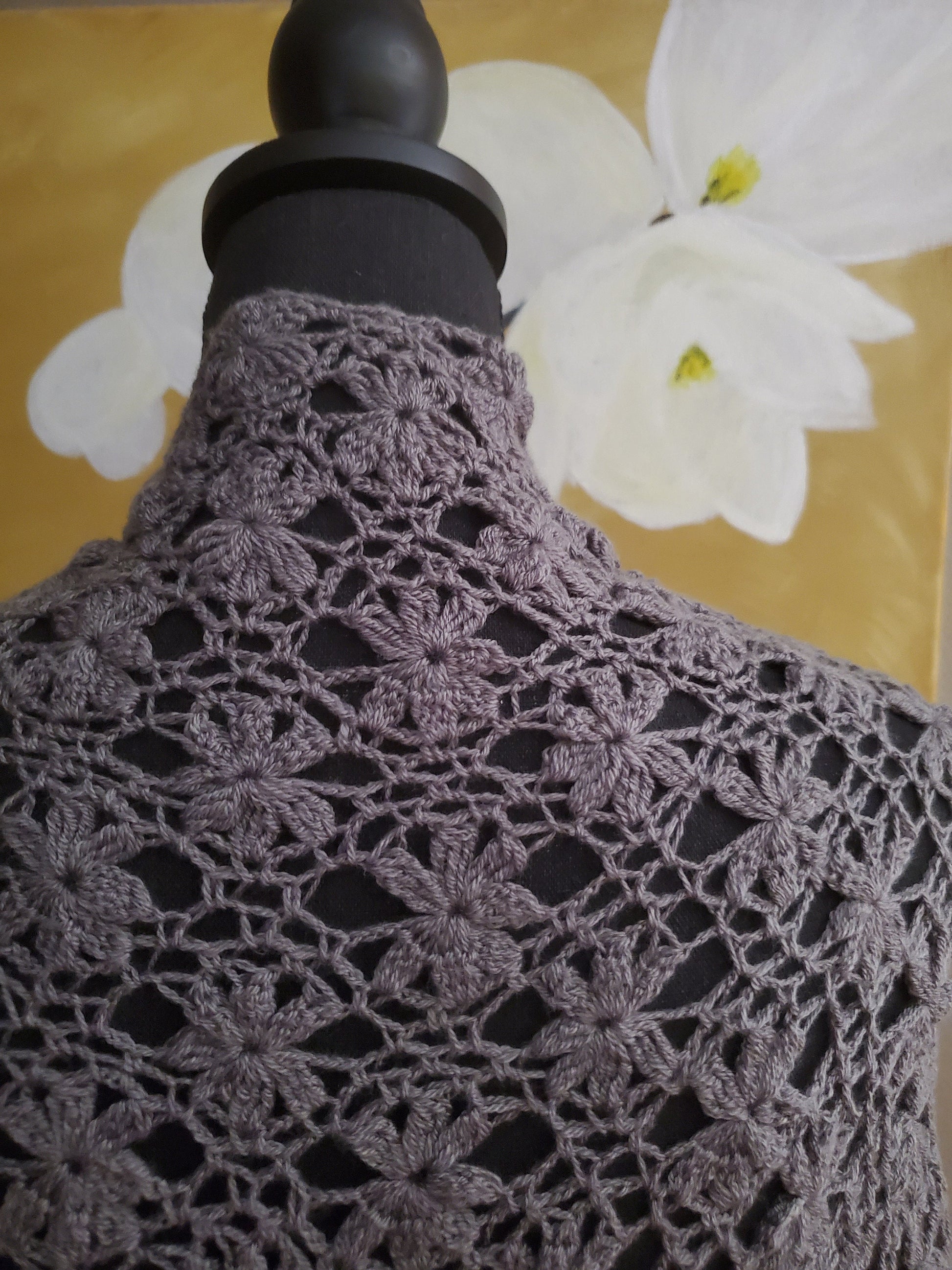 Jasmine Flower Triangular Crochet Shawl in Charcoal