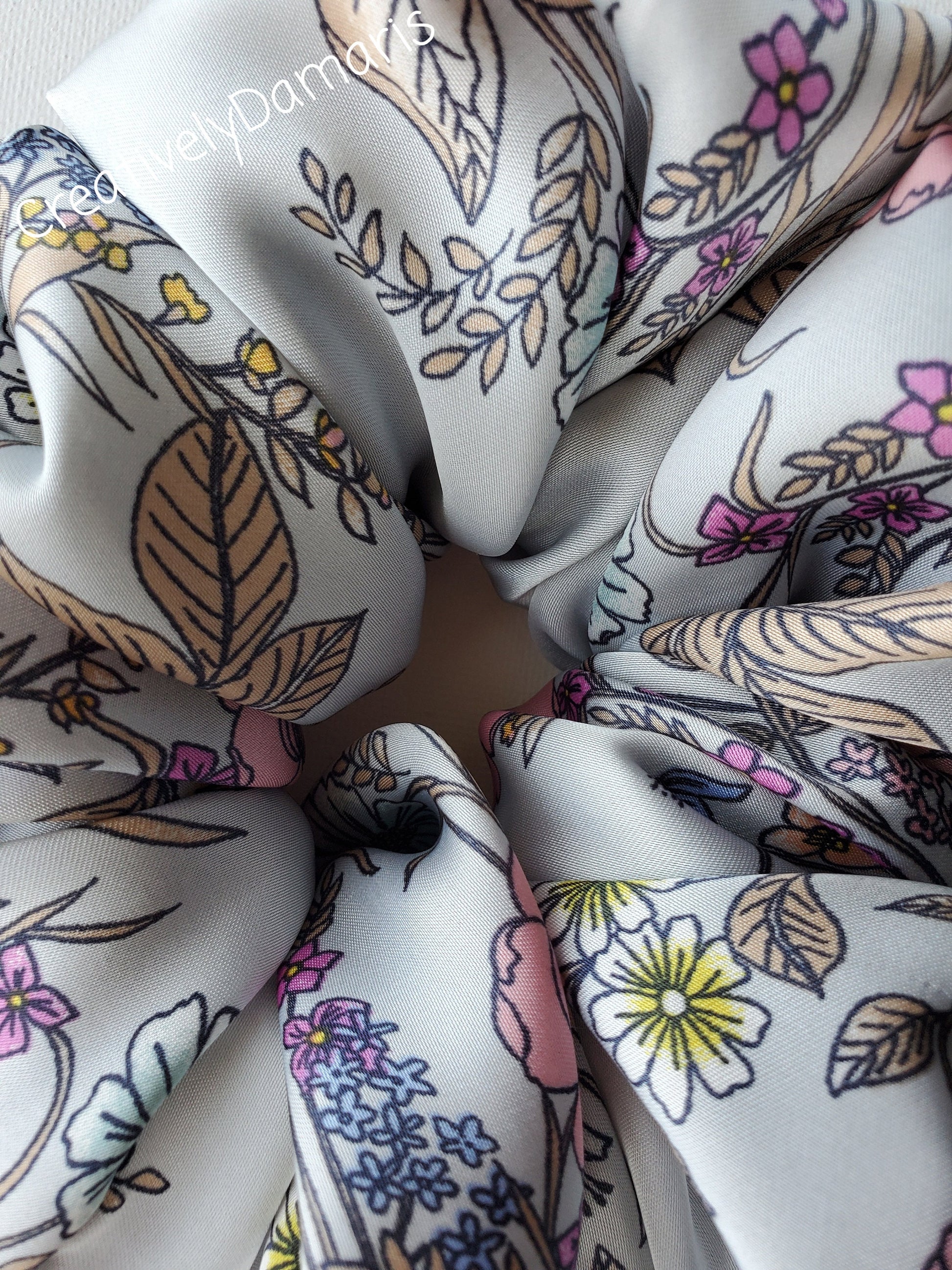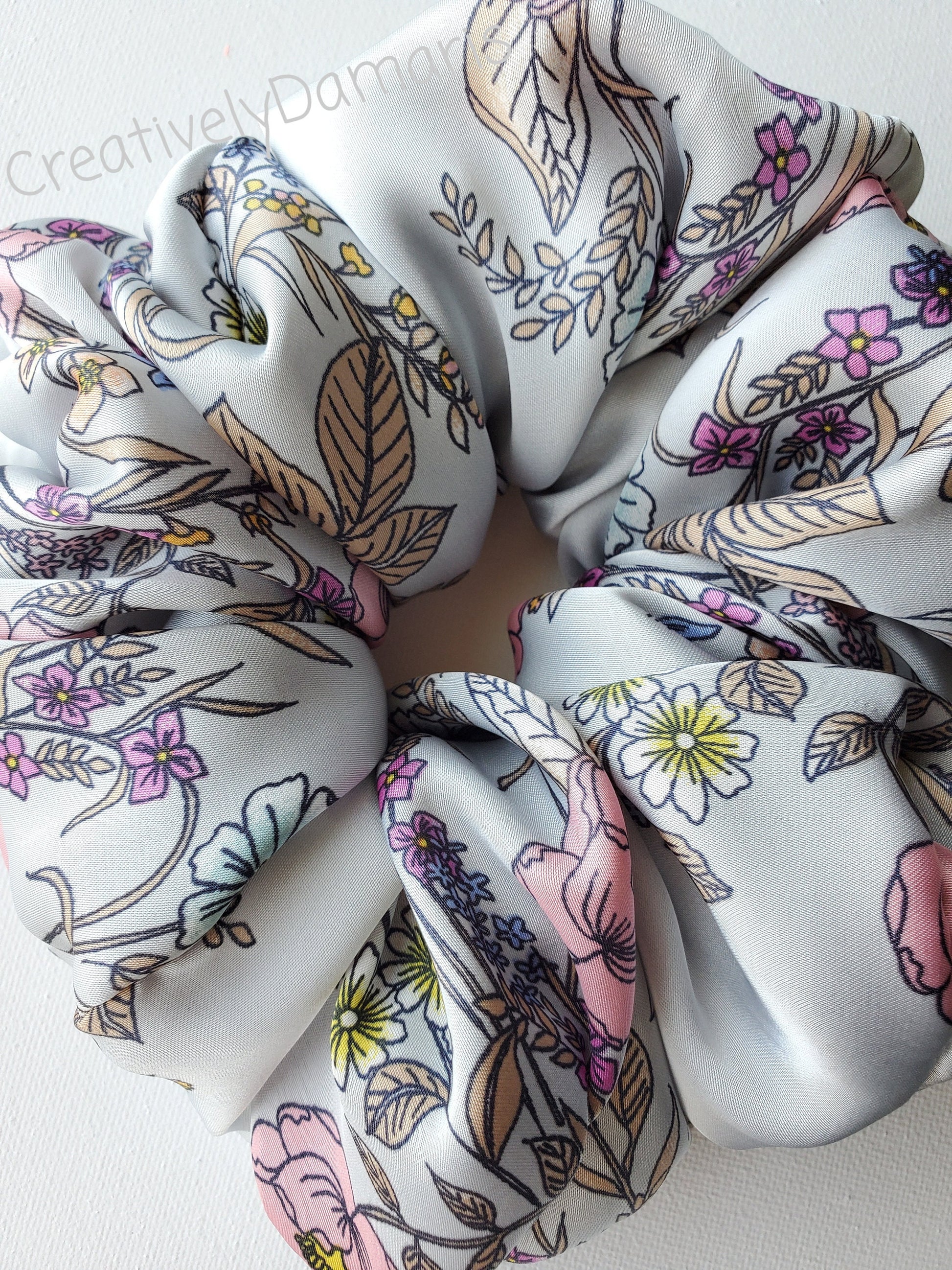 Pink Floral on Light Silver Scrunchie XL Scrunchie
