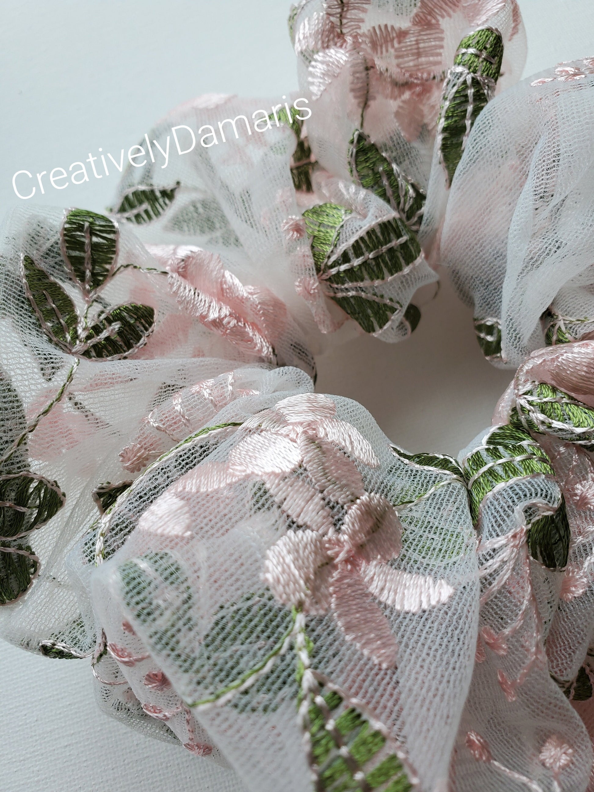 Sheer Mesh Organza Embroidered XL Scrunchie