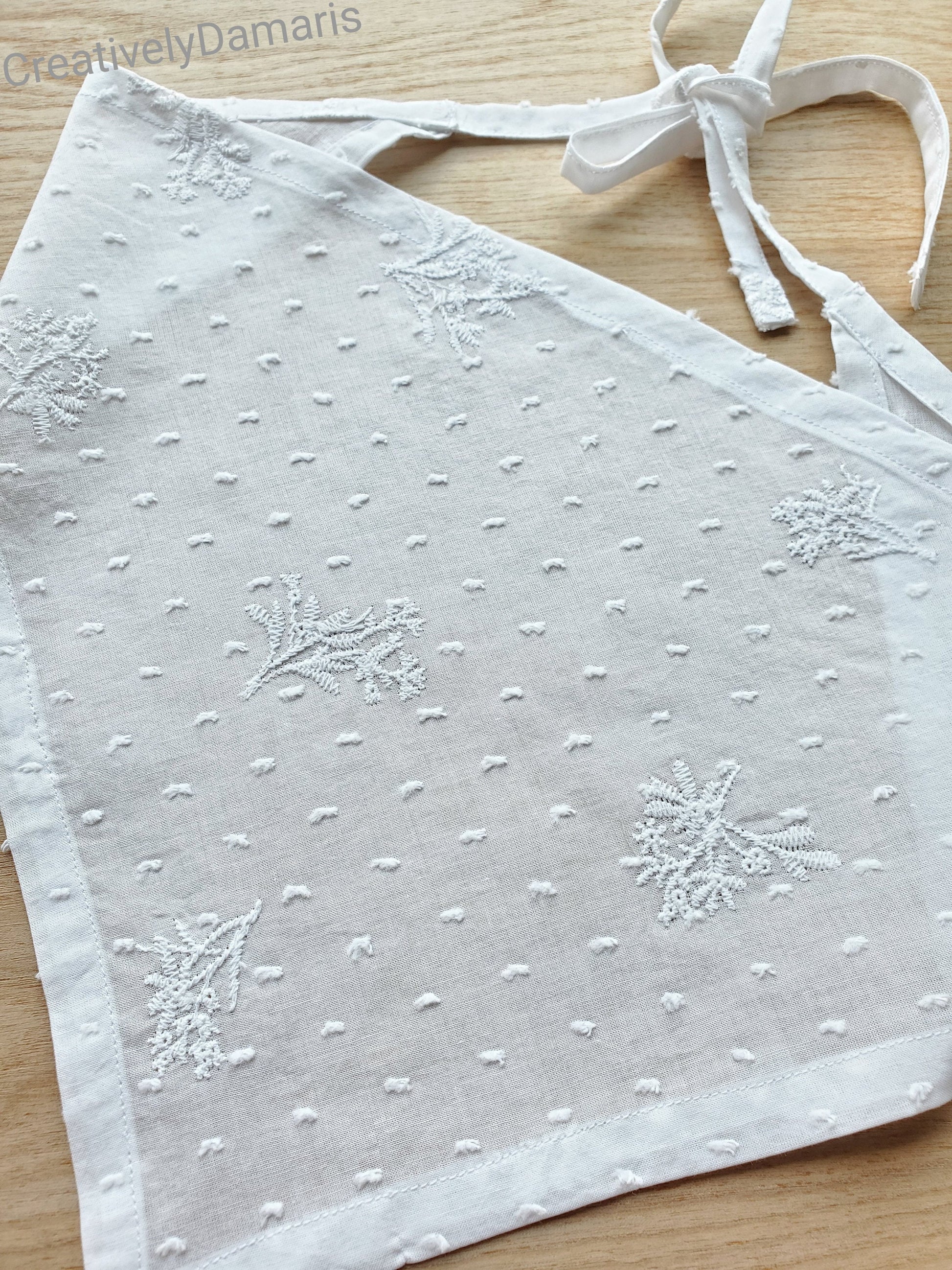 Wing Span (right tip to left tip): 21" Depth (top edge to tip of back point): 10"                      Each tie for a flattering fit and adjustable comfort: 12"